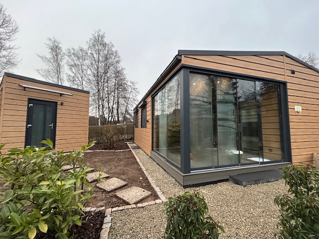 Mit diesem Projekt bieten wir zum ersten Mal ein „rund um sorglos Paket“ an. Planung, Baugenehmigung, Fundamentbau und anlegen des Gartens wird von uns vorbereitet. Der bestehende Baum- und Buschbestand wurde weitestgehend erhalten und ergänzt. Die neuen Hausbesitzer wählen den Haustyp und suchen sich die Innenausstattung und Fassadenfarbe nach ihren Wünschen aus.